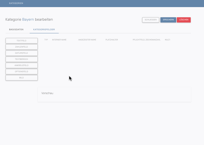 Innerhalb jeder Kategorie können zusätzliche Felder angelegt werden. Diese Felder stehen dann in den Objekten der Komponenten, die das Kategoriesystem unterstützen als zusätzliche Felder zu jedem Objekt zur Verfügung.