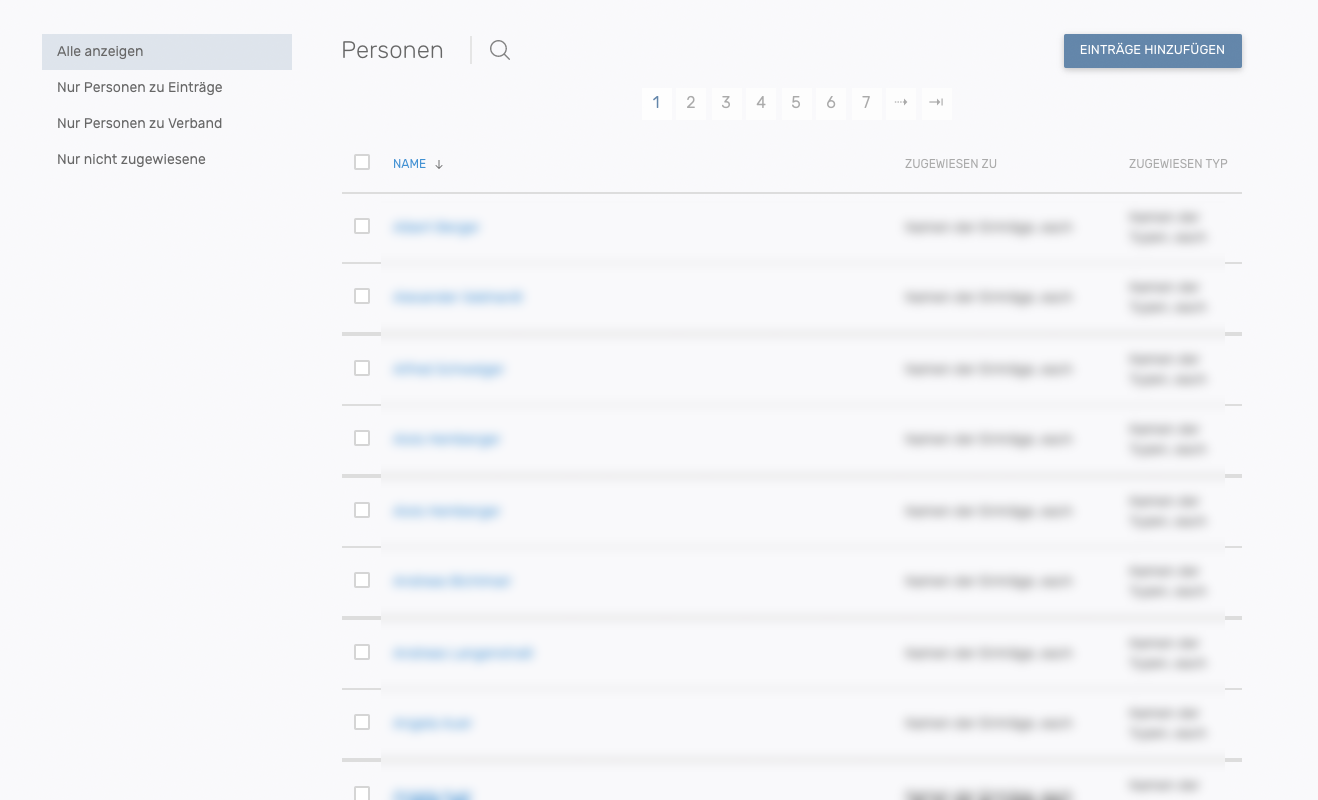 Die Personen Ansicht zeigt einen Überblick über alle eingetragenen Personen. Es bietet sich hier die Möglichkeit nach Personen zu suchen (), Sie zu filtern und auch neue Personen hinzuzufügen oder zu entfernen.
