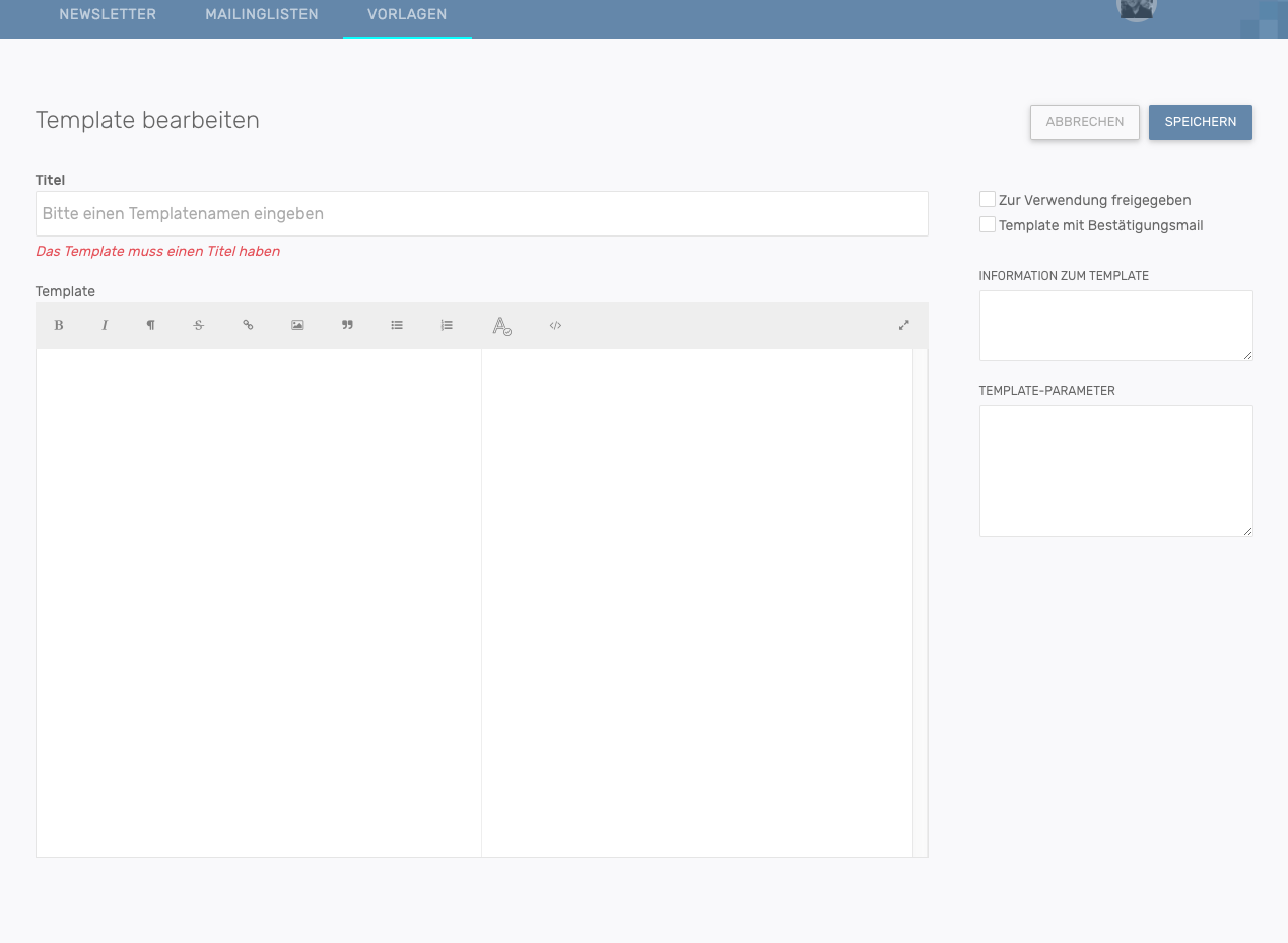 Die Mindestanforderung für das Speichern eines Newsletters ist der Titel.