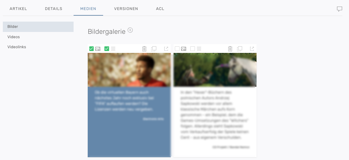 Einen Artikel können mehrere Bilder, Videos und Videolinks zugeordnet werden.