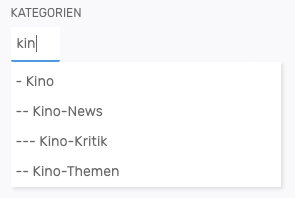 Beim Tippen eines Kategorienamens erscheinen Vorschläge aus den bereits angelegten Kategorien.
