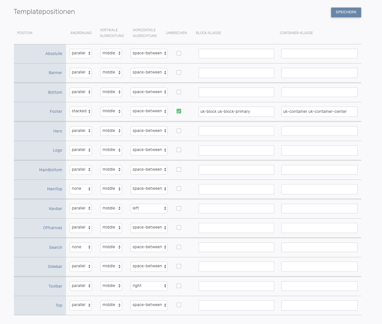 Der -Button speichert die jeweilige Systemeinstellung, die bei Einstellungen, Template oder Komponenten verändert wurden.